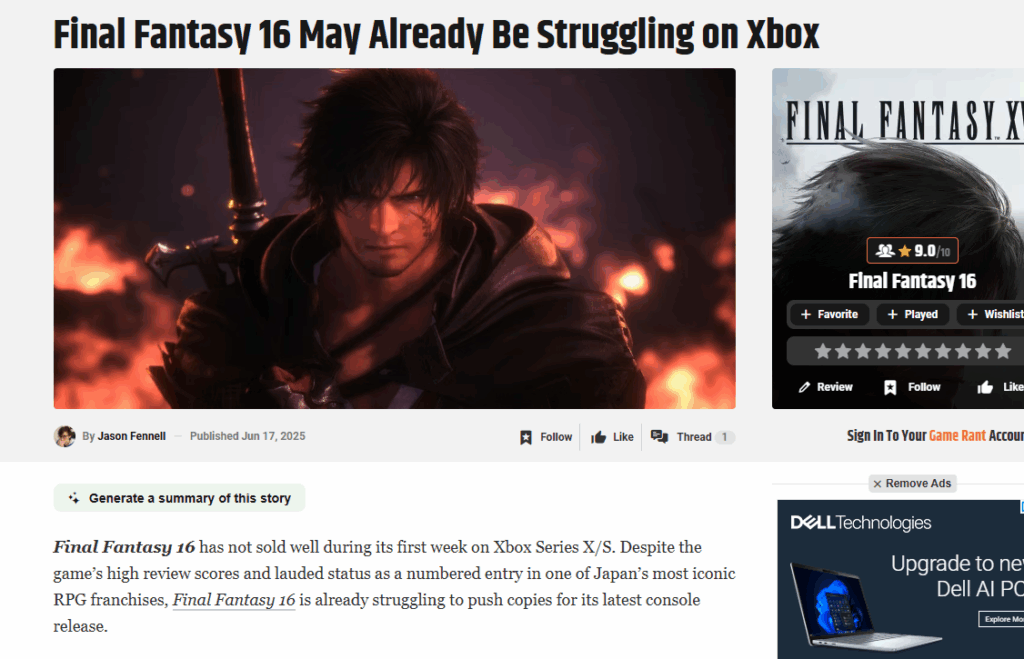 Something that came to mind for me personally is whether or not Final Fantasy 16 on Game Pass was even a discussion. Surely Square knew the sales would be bad. So why wasn’t this put on the service? Could it be Square was desperate to hit sales numbers, so they took a chance regardless of how bleak it looked? Could it be Microsoft knows their consumer base and feels paying the fees to put the game on the service wasn’t worth it? For Square’s sake, I hope it’s the former. If it’s the latter, that could give the impression that their platform partner doesn’t value their top franchise. This is just speculation. But it is curious that this game wasn’t put on the service.